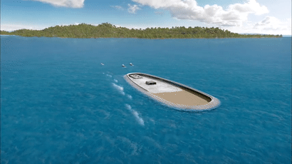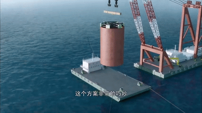 巨型圆钢筒插入海床,圆筒围合出海岛的边界,再往中间填埋沙土,也不会因为柔软的海床而散开。